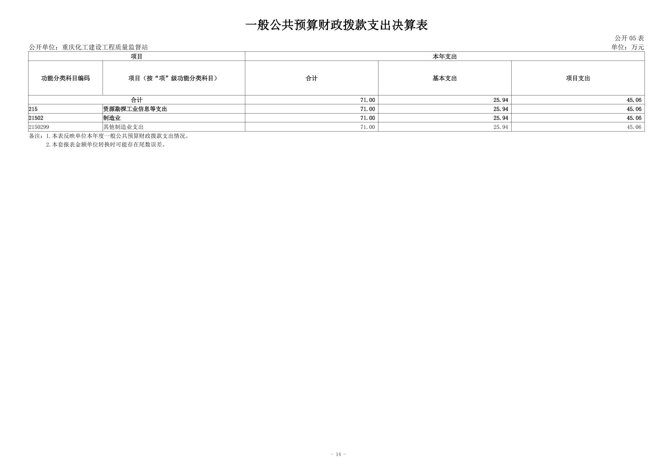 重庆化工建设工程质量监督站2023年度决算公开说明