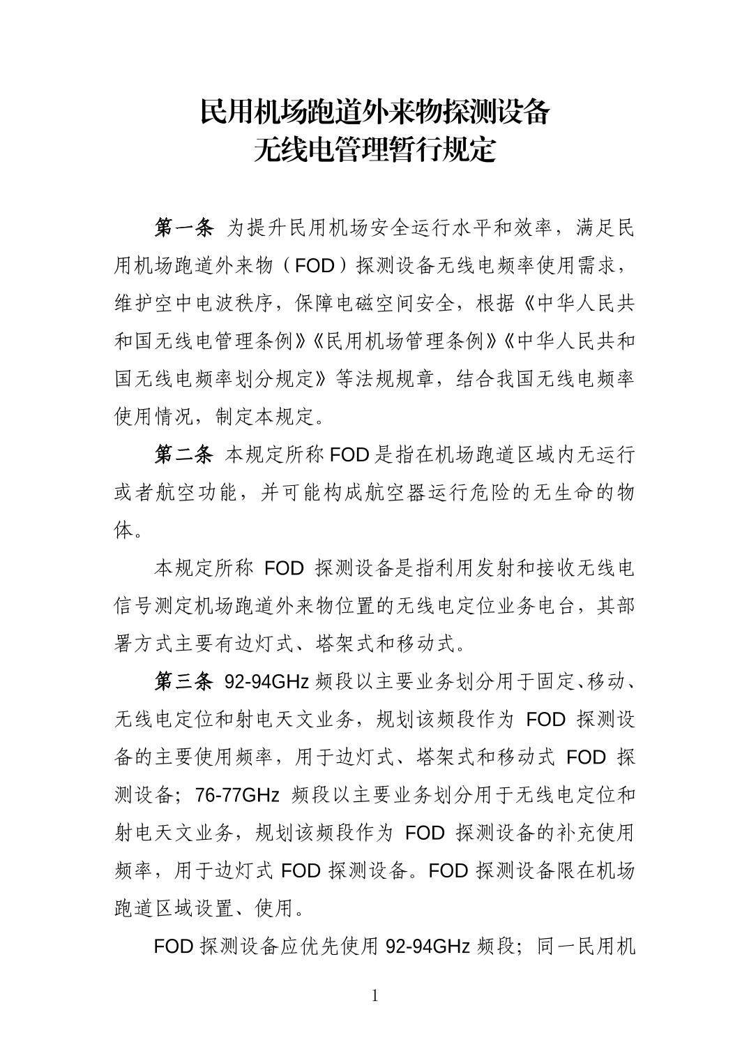 关于印发民用机场跑道外来物探测设备无线电管理暂行规定的通知